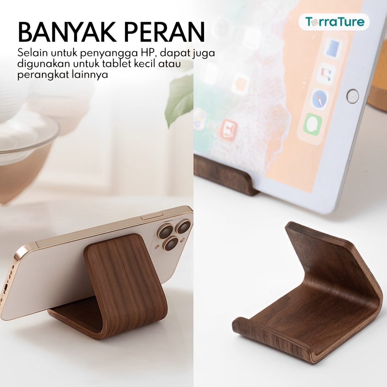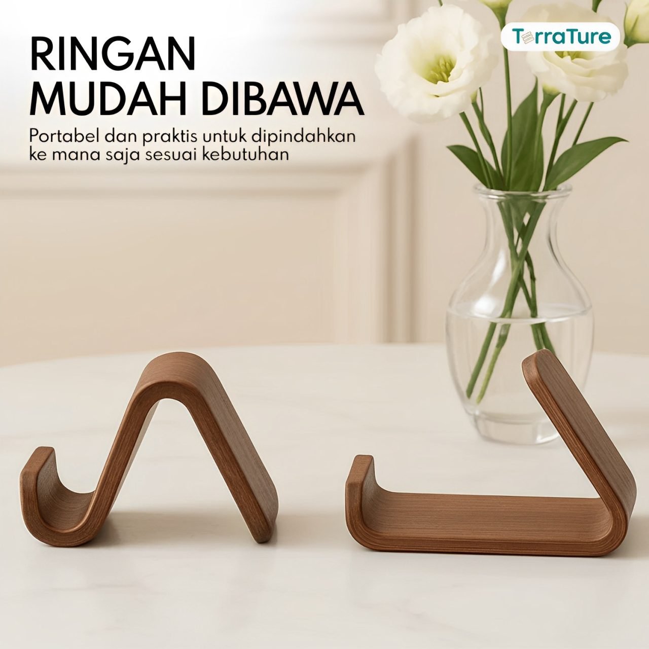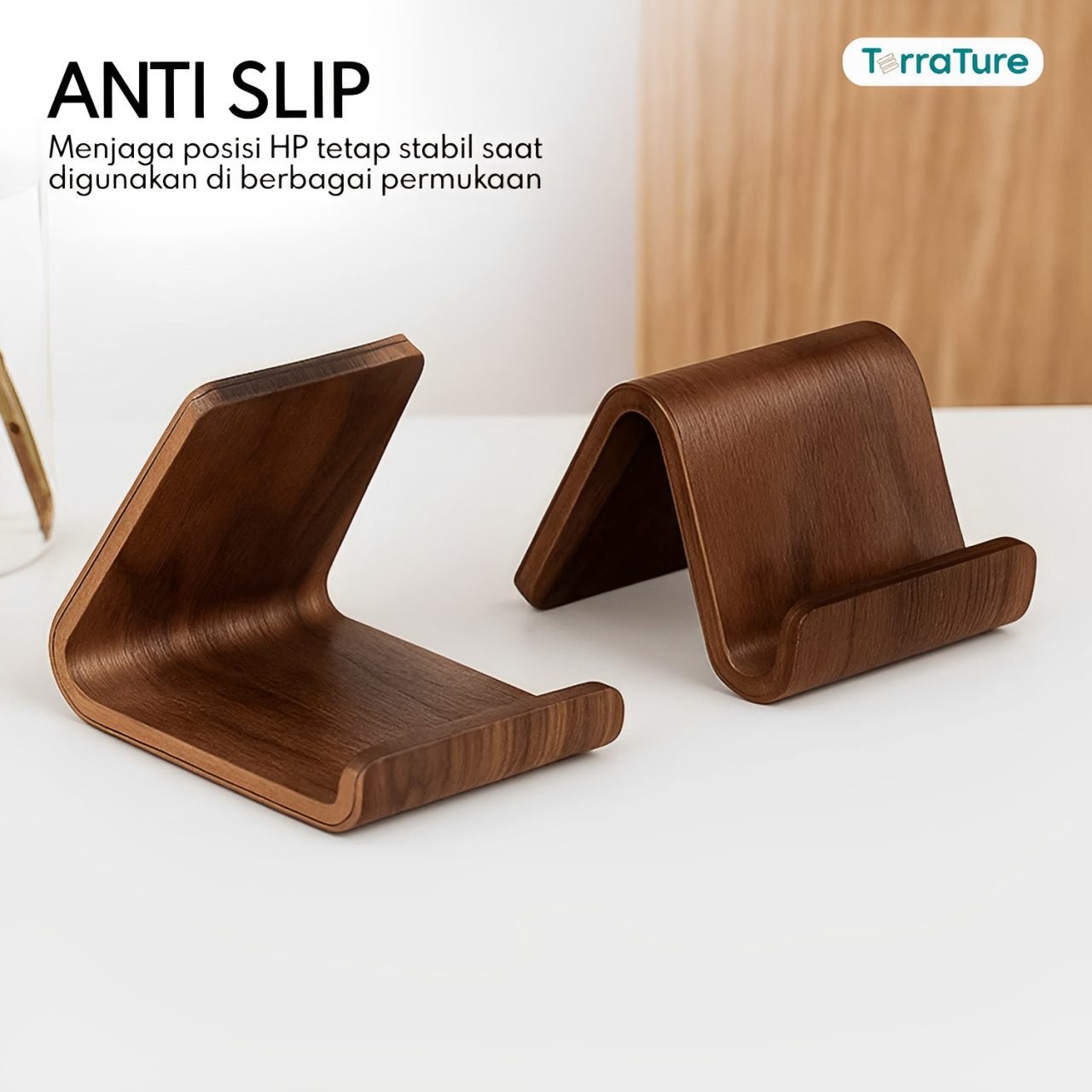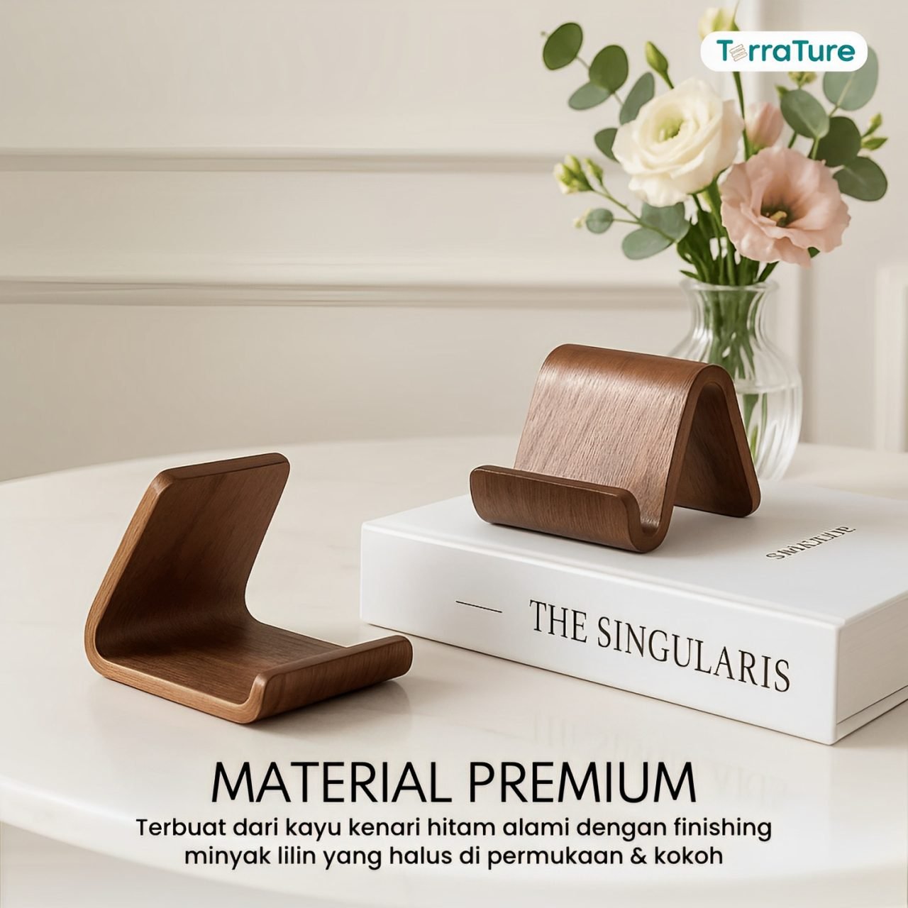LIV Series Stand HP Kayu Solid by TerraTure, perpaduan sempurna antara fungsi, keindahan, dan keawetan dalam satu desain yang elegan!