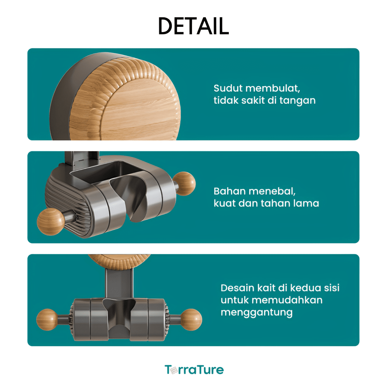 Perekat sangat kuat & dilengkapi dua pengait samping kokoh multifungsi